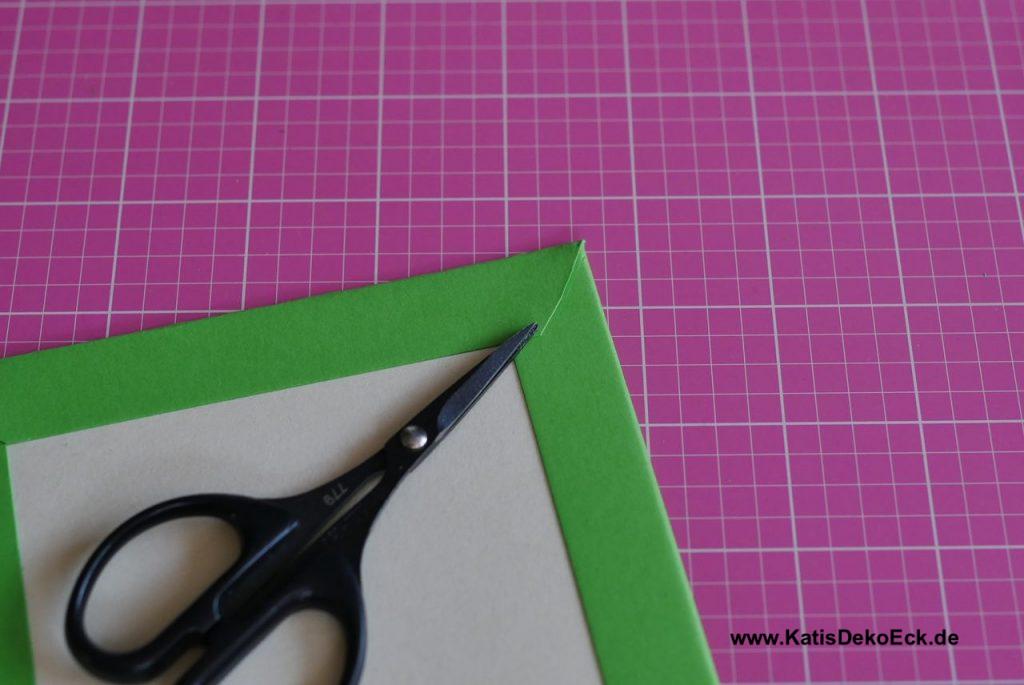 Next I cut off the edges of the newly created piece. But careful, not exactly where the scoring lines meet, but approx 2 mm off to the outside:
